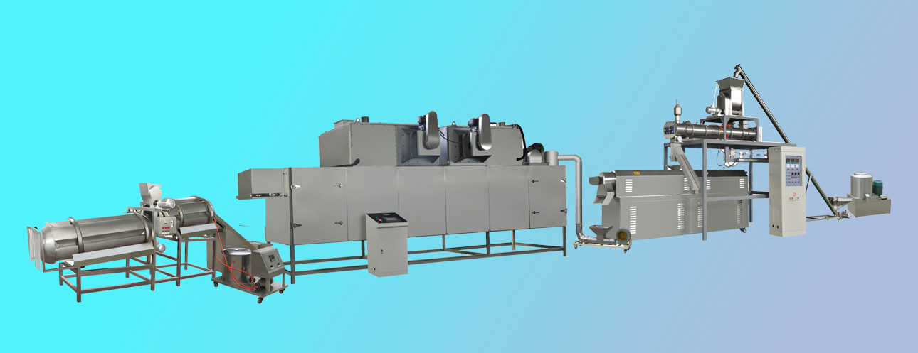 膨化設(shè)備:國內(nèi)現(xiàn)階段膨化機生產(chǎn)工藝分為單螺桿膨化機和雙螺桿膨化機,單螺桿膨化機在投資方面相對于雙螺桿膨化機有很大優(yōu)勢,但是單螺桿膨化機因為設(shè)備機型問題,兩者在生產(chǎn)寵物飼料蛋白質(zhì)和脂肪含量低的前提下都沒有問題,在生產(chǎn)一些脂肪和蛋白質(zhì)含量較高的產(chǎn)品時,或改變產(chǎn)品配方時(通常界定為寵物食品)劣質(zhì)單螺桿就會出現(xiàn)若干比較難解決的問題,(噴料、出料不穩(wěn)、形狀不好),這是指在通常情況下國內(nèi)大部分廠家設(shè)備所存在的弊病。