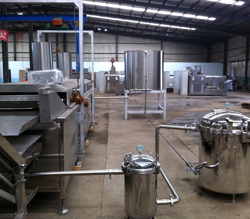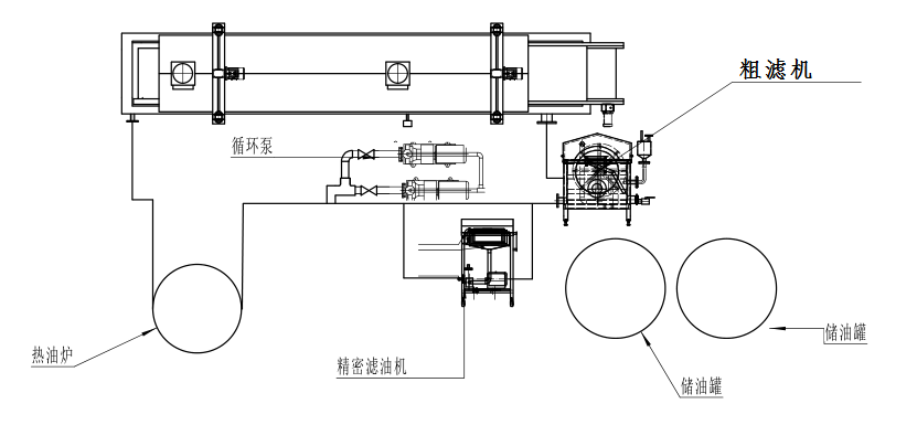 油炸機(jī)組成:隧道式油炸機(jī)、粗濾機(jī)、精濾機(jī)、循環(huán)油泵、儲(chǔ)油罐2臺(tái)、外置加熱器(燃油、燃?xì)庑团渲茫?、控制部分組成。