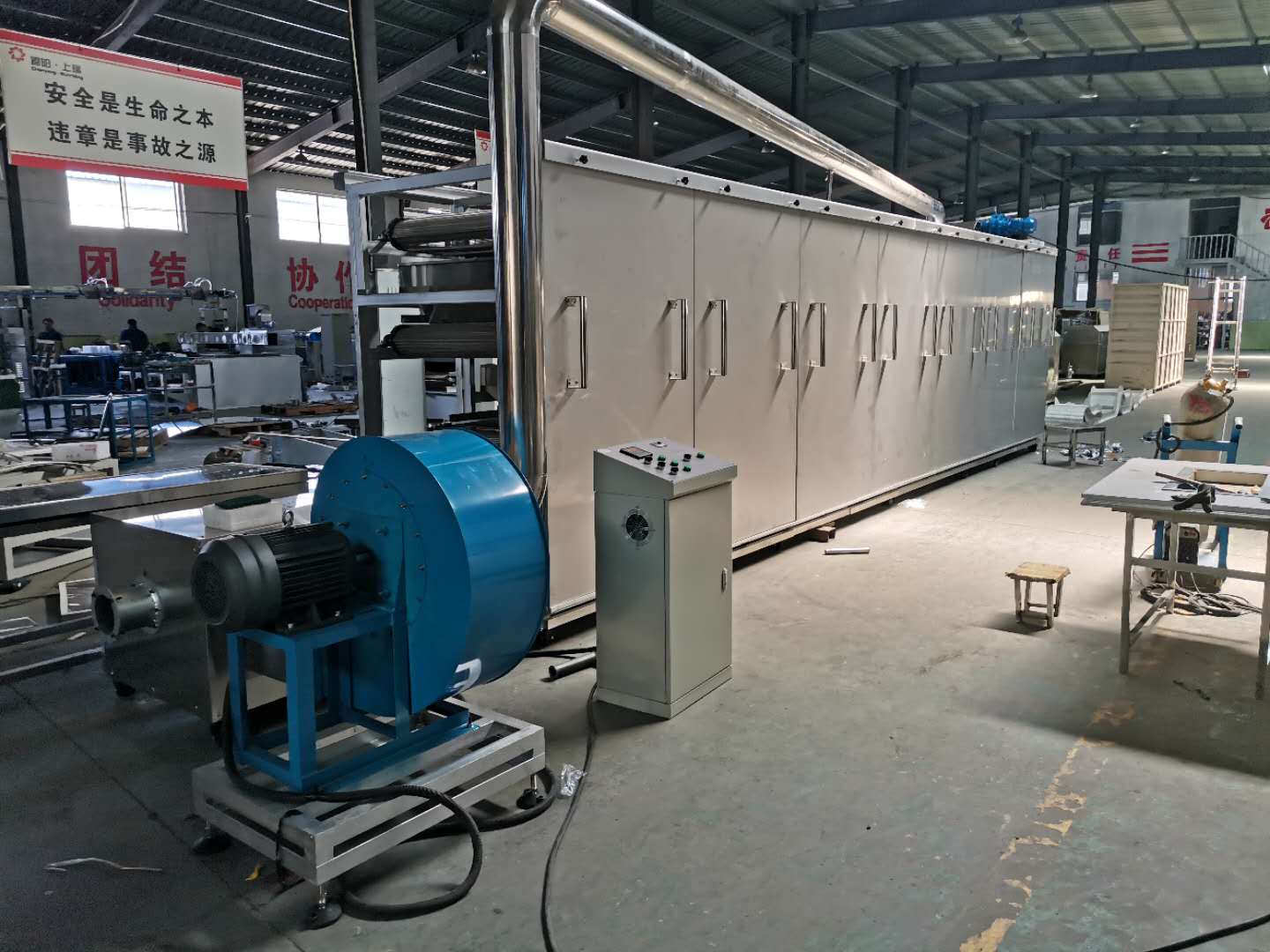 烤箱上料方式:可以直接選用帶爬坡結(jié)構(gòu)和外部借助輸送機(jī)送入烘干機(jī)料床,直接爬坡的烘干機(jī)結(jié)構(gòu)可以更直觀的觀測(cè)到物料布料狀況,多用于產(chǎn)量較大的生產(chǎn)線;借助外部上料的烤箱占地面積小,安裝方便,多用于單臺(tái)膨化主機(jī)的生產(chǎn)線配置