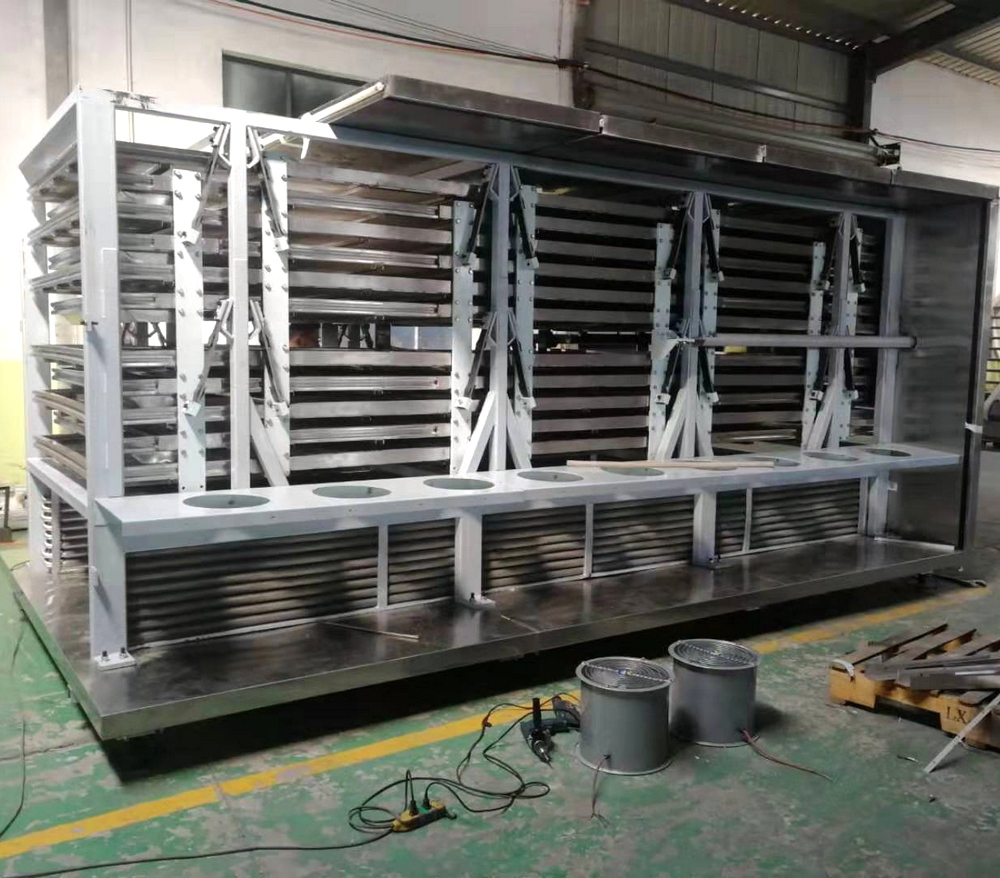 干燥時物料從設(shè)備頂部的加料口進(jìn)入,在振動和自身重力的作用下,物料從上層自下層往復(fù)移動,后從底層的出料口排出。熱空氣從底層進(jìn)入,穿過帶孔床層往動,同時與床層上的物料進(jìn)行充分的傳熱和傳質(zhì),后通過頂部的排濕口排出。