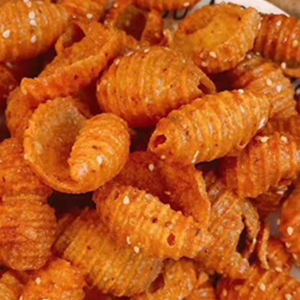 本生產(chǎn)線可生產(chǎn)產(chǎn)品流行的產(chǎn)品八爪燒、比薩卷 豌豆脆 貝殼酥等產(chǎn)品。新工藝產(chǎn)品更酥脆,新形狀,形成視覺沖突